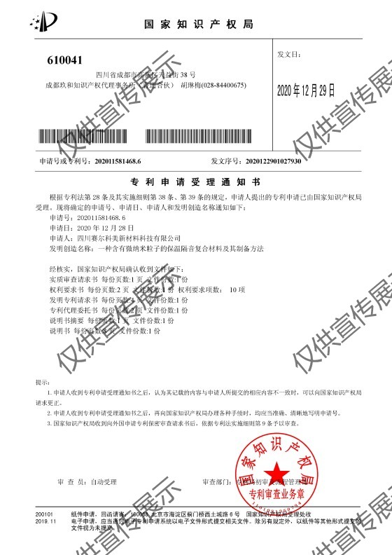 四川賽爾科美新材料科技有限公司是專注于綠色建材和生態(tài)環(huán)境材料研發(fā)、生產(chǎn)的新型高新技術企業(yè)。公司聯(lián)合國內(nèi)外一流的科研院校,組建綠色建材及生態(tài)環(huán)境材料的博士研發(fā)團隊,依托在建筑行業(yè)二十多年的探索及實踐經(jīng)驗,致力于研發(fā)納米技術在建材行業(yè)中的應用。公司設有高端納米材料實驗室,并建立了綠色建材及生態(tài)環(huán)境材料研發(fā)中心與生產(chǎn)試驗基地,以強烈的社會責任感和超前的行業(yè)發(fā)展意識,立足“綠水青山就是金山銀山”的中國夢,圍繞高性能、低碳、環(huán)保、安全的材料科技產(chǎn)品開發(fā)、生產(chǎn)與服務,致力于打造綠色建材及生態(tài)環(huán)境材料行業(yè)專業(yè)化知名品牌。